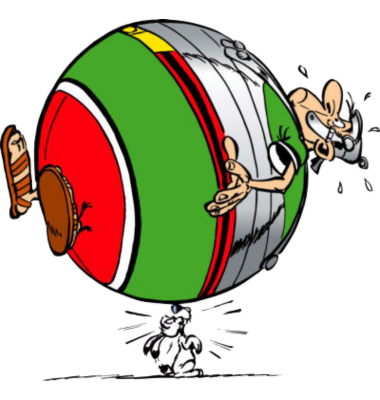 Plus que jamais, les Romains sont soumis à rude épreuve dans Le Grand Fossé : condamnés aux corvées ménagères au sein de leur camp, ils font par ailleurs une rude expérience de la magie des potions gauloises. D’abord « complètement ronds » (au sens propres !), ils deviennent sources de nombreux jeux de balles pour les Gaulois ! Puis, devenus minuscules, ils détalent avant qu’Idéfix ne les ajoutent à son repas !