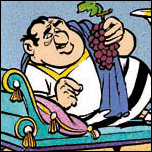 Eine Tour de France wäre des Namens nicht würdig, ohne einen Ruhetag in einer der Etappenstädte, die unseren müden «Wettreisenden» erlaubt, sich zu erholen und mit neuer Kraft weiter zu reisen. Asterix und Obelix gönnen sich ganz bewusst ein solches Päuschen auf ihrer kulinarischen Reise, indem sie sich freiwillig von den Römern gefangen nehmen lassen! Freiwillige Gefangene, lachende Gefangene, die entspannt auf einem Wagen liegen, der von Pferden des Imperiums gezogen wird. So erreichen unsere beiden Helden Tolosa (Toulouse) völlig ausgeruht, während die römischen Legionäre, die sie eskortieren, die anstrengende Reise zu Fuß machen müssen! Angekommen in Tolosa, beeilt sich der für die «Gefangennahme» verantwortliche Zenturio, den Präfekten der Stadt, Mitgenus, zu verständigen, indem er ihm eine kleine «Überraschung» verspricht: die meistgesuchten Dissidenten von ganz Gallien. Das ist für Mitgenus eine willkommene Gelegenheit, sich ein wenig Bewegung zu verschaffen (was bei ihm bedeutet, sich auf einer Sänfte von zwei Sklaven tragen zu lassen!!! ) und die Gefangenen zu besichtigen. Doch die Überraschung für den Präfekten fällt gänzlich unerwartet aus. Denn statt der Gallier findet er halb betäubte Legionäre, während Asterix und Obelix die Stadt längst schon wieder verlassen haben – samt einem Paket mit köstlichen Würsten aus Tolosa. Wen wundert es daher, dass er beim Erklärungskauderwelsch eines sehr niedergeschlagen wirkenden Legionärs nur noch Wurst versteht. Bei Minerva!