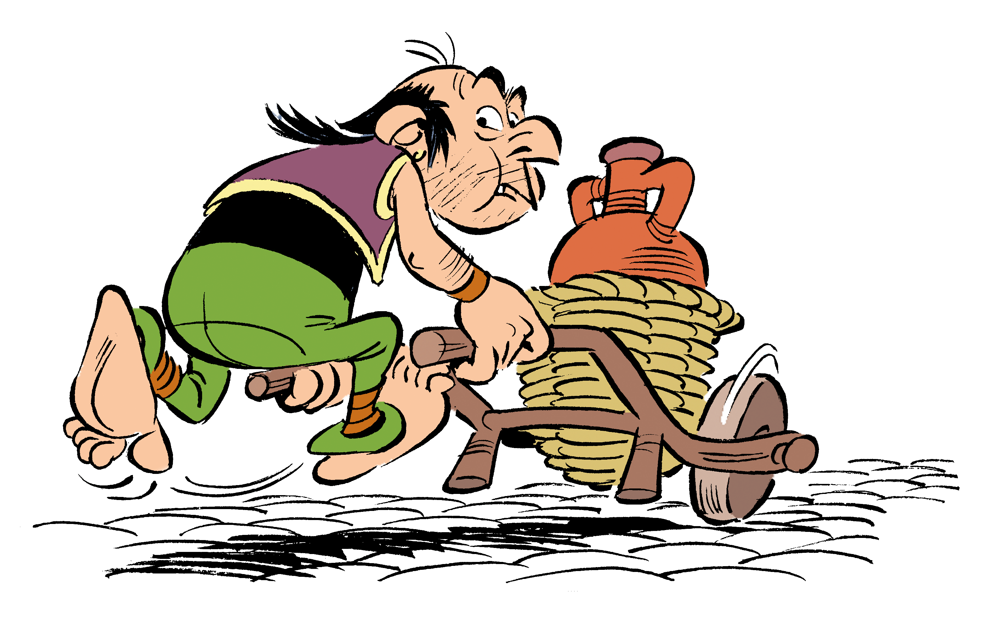 Le Lusitanien Pirespès fait partie des quelques « méchants » qui ont le privilège de figurer en couverture d’un album d’Astérix. Et c’était sans doute faire beaucoup d’honneur à ce personnage veule et sournois, motivé par une seule obsession : recevoir des mains du gouverneur Pluvalus (un autre traître, comme par hasard) une vaste domus et des esclaves en récompense de ses bons et déloyaux services. Pirespès est celui qui ourdit dans l’ombre, n’hésitant pas à machiner pour faire emprisonner Mavubès, un petit producteur de garum dont le savoir-faire est apprécié de César… mais qui fait de l’ombre à une autre production : la colossale entreprise Garum Lupus®…